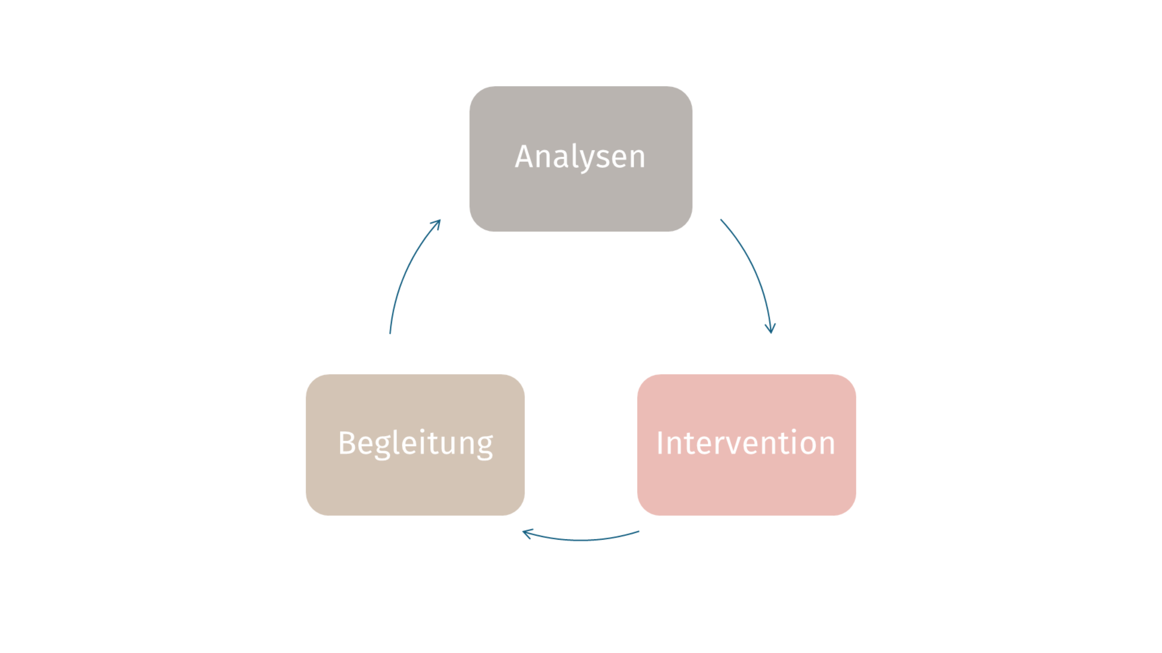 Das finden Sie in meinem primären Zyklus. Basierend auf meinen Analysen und einer Intervention (z. B. Teambuilding) richte ich die Begleitung Ihres Unternehmens und Ihres Personals aus.